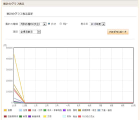「家計のグラフ表示」で、項目ごとの月変化が見られます。