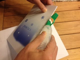 4.ちょうど折り代としたあたりに、糊を付けて、