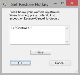 「Set Restore Hotkey」を選んで、窓内で指定したいホットキーを押します。