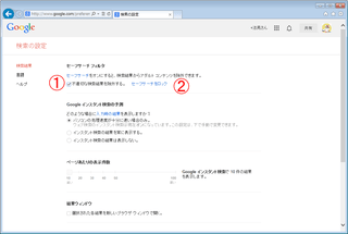 そして、「検索設定」ページを開きます。