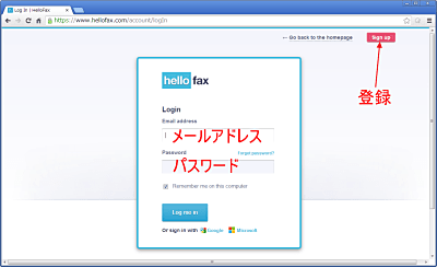 登録済み=メールアドレスとパスワードを入力→「Log me in」をクリック。