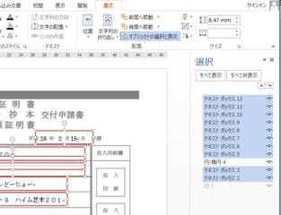 9.入力が完了したら、「オブジェクトの選択と表示」をオンにして、