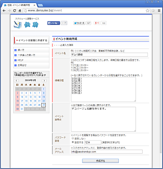 必要事項を入力して、「イベントを作成する」ボタンを、クリック。