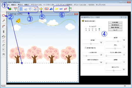 ③の4つのボタンのうち、いちばん右の「Rain/Snow and Ripples」をクリック。