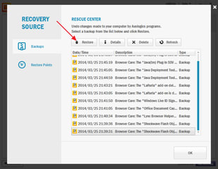以前の設定を選んで、「Restore」ボタンを押すだけ。