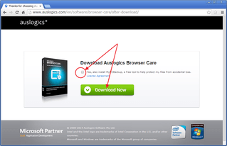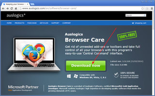 auslogicsの「Browser Care」のページを開き、