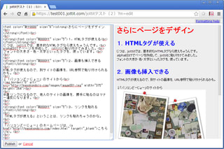 右側の「jottitテスト(2)」ページは、HTMLを使っています。