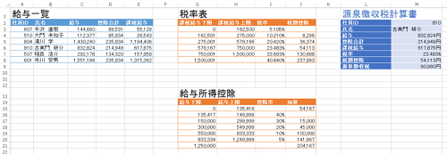 源泉徴収税計算書 教材(Excel) X Facebook LINE コピー 2014.04.30 検索関数の中で、もっとも使われているのが、Vlookup関数。 この関数を使って、ややこしい税額計算を、自動化してみましょう。 Vlookup関数には、検索方法が2種類あります。 その使い分けも、マスターしましょう。 テキストのダウンロードは、こちら。 test ad