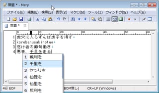 ただし、ATOKとは違って、直近に入れた直接入力文字のみ。