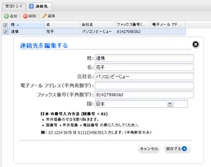 上部「ファックスの表示」メニュー→「連絡先」タブで、