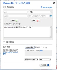 「ファックスの送信」メニューで、送信先・送信ファイルを指定。