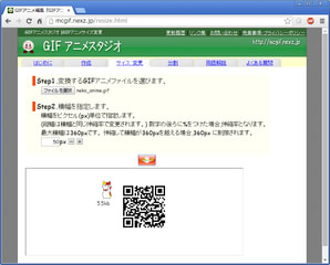 「サイズ・変更」タブで、GIFアニメ画像をアップロードして、