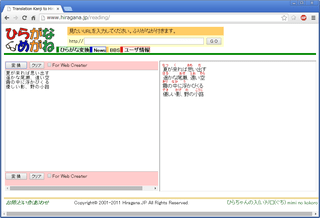 Webページの、漢字にフリガナをふってくれるサービス。