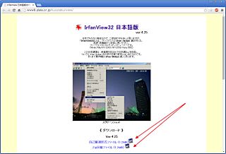 IrfanView日本語版サイトから、ファイルをダウンロード。