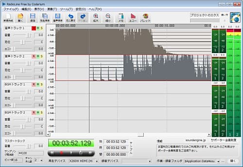 フェードを入れたいときは、「SoundEngine」で加工してから、「RadioLine」へ。