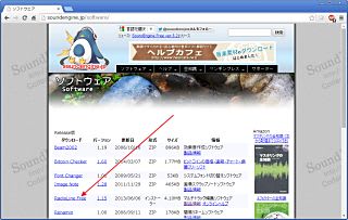 ソフトのダウンロードページを開いて、「RadioLine Free」項目をクリック。