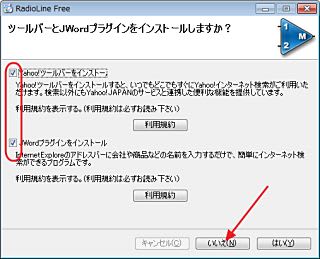 途中、Yahoo!ツールバーやJWordの勧誘があります。