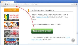 「類義語辞典で検索」ボタンを、ブックマークバーまでドラッグ&ドロップ。