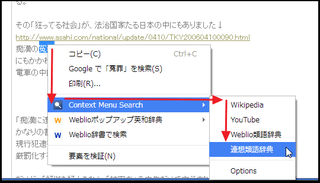 右クリック→「ContextMenuSearch」で、目的の辞書を選ぶだけ。