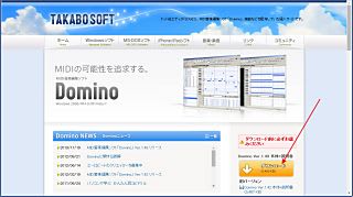 ②「TAKABO SOFT」サイトの「Domino」のページで、「ダウンロード」ボタンをクリック。