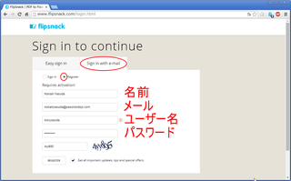 「FlipSnack」サイトで、「Sign in」をクリック。