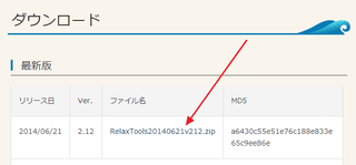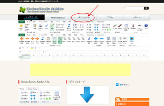「RelaxTools」サイトの、「ダウンロード」メニューをクリック。
