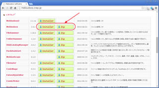 Mebiusbox」サイトで、「Mebiusbox」項目の、「Installer」ボタンまたは「Zip」ボタンをクリック。