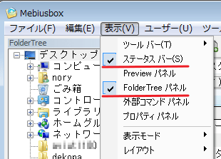 「表示」メニュー→「ステータスバー」「Folder Treeパネル」のみ、チェックにしました。