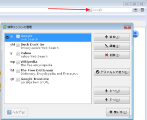 検索エンジンは、初期設定では「Duck Duck Go」になっています。