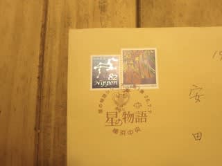 ワイシャツを開くと、メッセージカード(切手展の案内状)になっています。