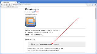 「Desktopper」のページを開いて、「ダウンロード」項目のファイル名をクリック。