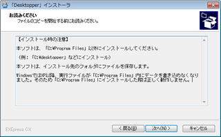 途中、「Program Filesフォルダにインストールしないほうがいいよ」とメッセージが。