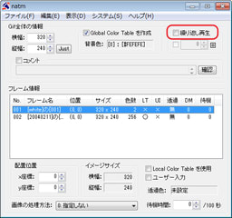 ①「GIFアニメ」タブを、クリック。