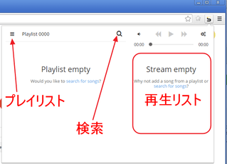 右側が再生リストで、ここに並んだ曲を、どんどん再生していきます。