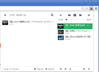 YouTubeからの音楽をリスト化して再生する、Chrome拡張機能。