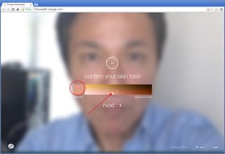 カラーバーの○をドラッグして、肌の色に近い色を選びます。