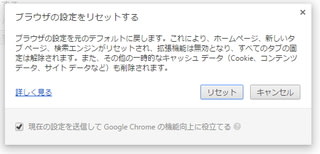 最後に、Chrome設定ページが表示され、「リセット」を促されます。