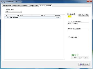 FlyingCharaの辞書とカテゴリは、「テスト」>「どーじょー教室」を開いておきます。