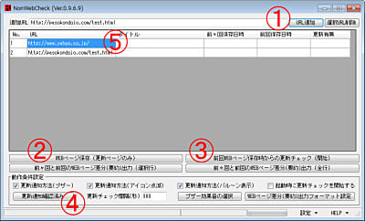 ⑤ URLを右クリック→「WEBページ更新チェック条件設定」で、