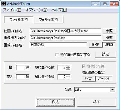 「AzMovieThum」は、「タテ◯枚・ヨコ◯枚」と指定するだけで、