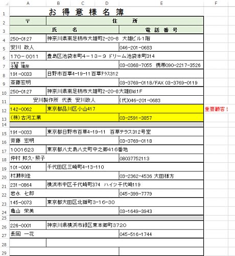 エクセルでの名簿管理