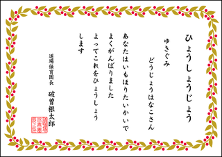 ふつうに「ワードで表彰状作成」というテキストを作ったことがないので、