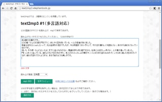 文字列を、音声ファイル(MP3形式)にしてくれるサービス。