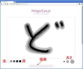 「Show Magic Eye」ボタンを押すと、ステレオグラムができます。