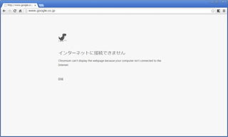 さて、ネットワークを切断して、Chromeで何かページを開いてみます。