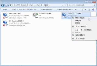 現在、有効に接続しているものを右クリック→「無効にする」。