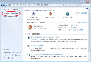左項目の中の、「アダプターの設定の変更」をクリック。