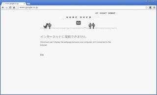 […] 以前、「ネットワークの一時切断法」という記事で紹介した、 Chromeでネットが切断したときにだけ遊べるゲームが、ふつうに遊べるページ。 「t-rex runner」 […]