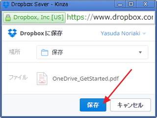 DropboxにPDFファイルを保存するよう要求するので、「保存」をクリック。