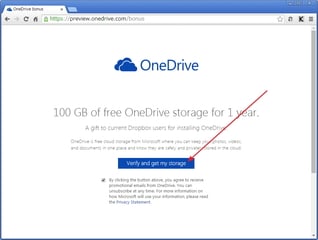 OneDriveのキャンペーンサイトを開いて、「Veryfy and get my storage」をクリック。